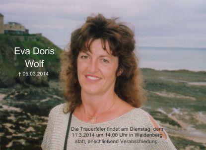 Die Trauerfeier findet am Dienstag, dem 11.3.2014 um 14.00 Uhr in Weidenberg statt, anschließend Verabschiedung.