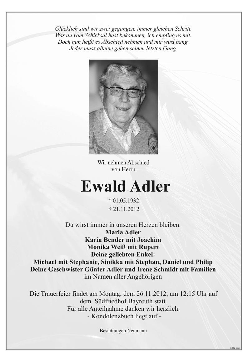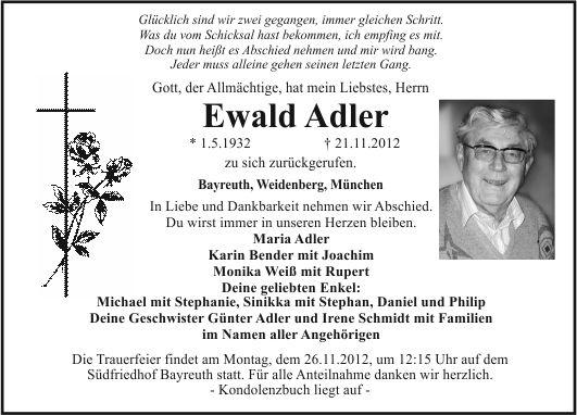 Die Trauerfeier findet am Montag, dem 26.11.2012, um 12:15 Uhr auf dem Südfriedhof Bayreuth statt. Für alle Anteilnahme danken wir herzlich.