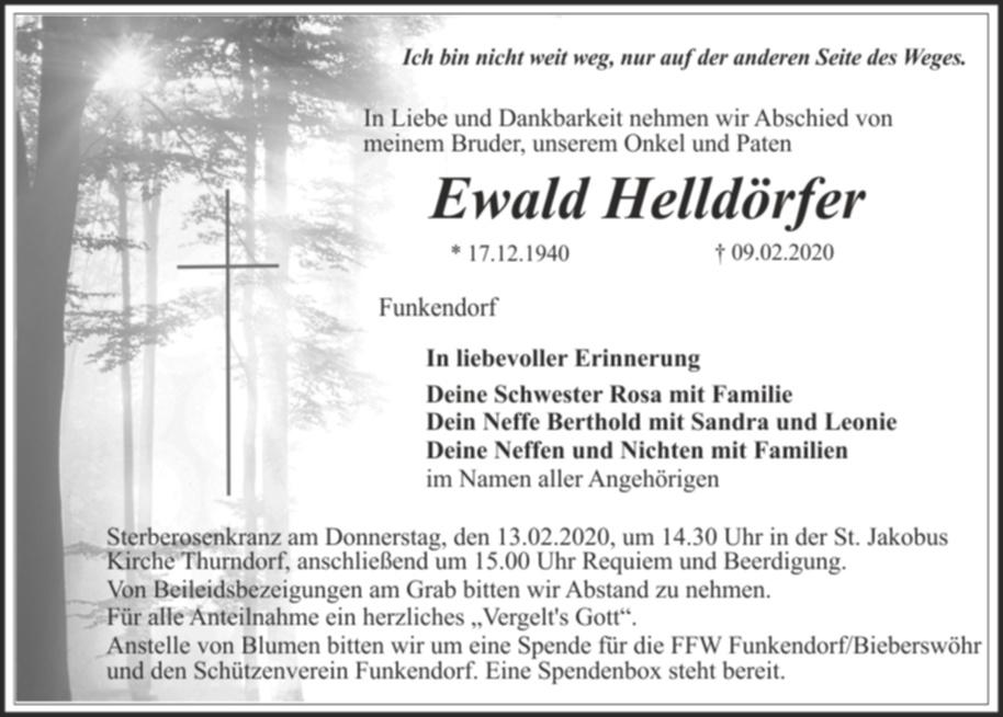 Sterberosenkranz am Donnerstag, den 13.02.2020, um 14.30 Uhr in der St. Jakobus Kirche Thurndorf, anschließend um 15.00 Uhr Requiem und Beerdigung.