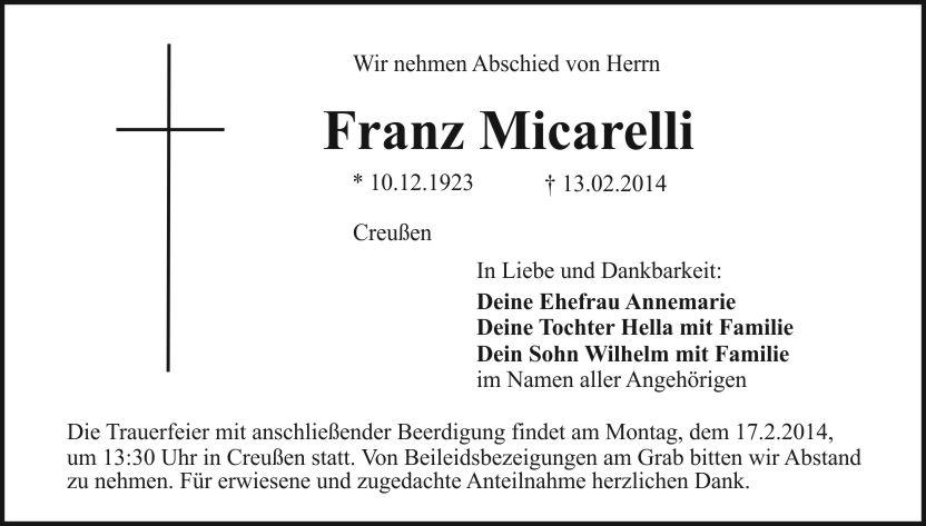 um 13:30 Uhr in Creußen statt. Von Beileidsbezeigungen am Grab bitten wir Abstand zu nehmen. Für erwiesene und zugedachte Anteilnahme herzlichen Dank.