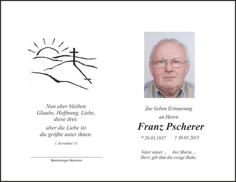 Aussegnung am Montag, den 01. Juni 2015 um 19.00 Uhr im Friedhof Immenreuth.