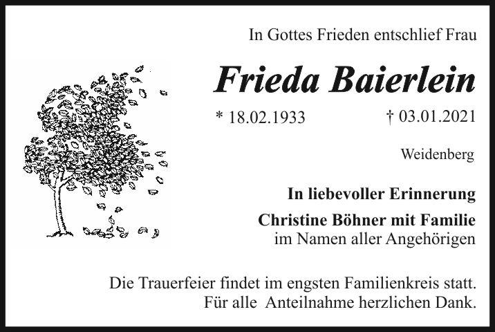 Die Beisetzung findet auf dem Friedhof in Friedhof in Weidenberg statt.