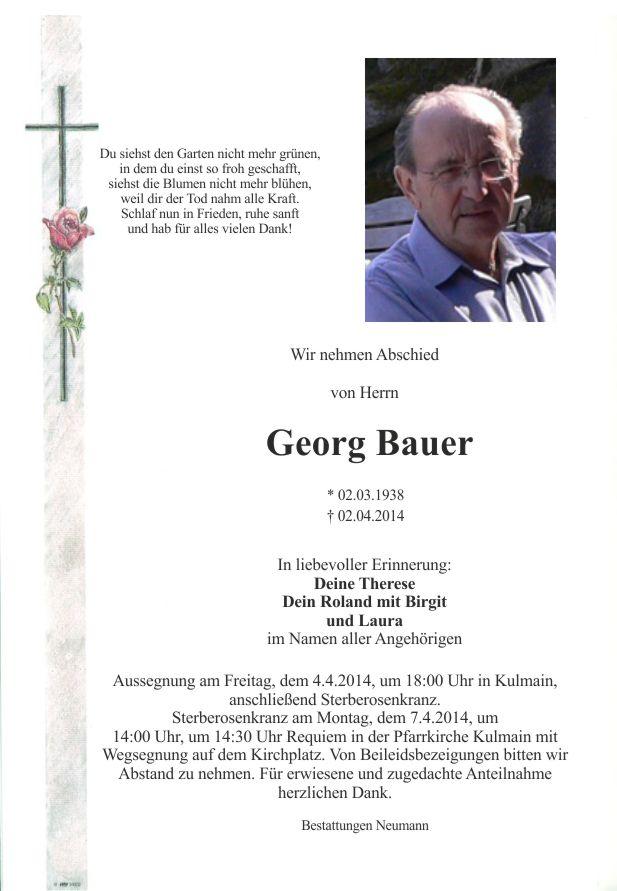 Aussegnung am Freitag, dem 4.4.2014, um 18:00 Uhr in Kulmain, anschließend Sterberosenkranz.
