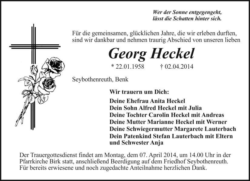 Der Trauergottesdienst findet am Montag, dem 07. April 2014, um 14.00 Uhr in der Pfarrkirche Birk statt, anschließend Beerdigung auf dem Friedhof Seybothenreuth. Für bereits erwiesene und noch zugedachte Anteilnahme herzlichen Dank.