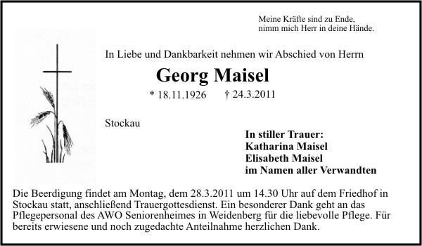 Die Beisetzung findet am Montag, 28.03.2011 um 14:30 Uhr auf dem Friedhof in Stockau statt.