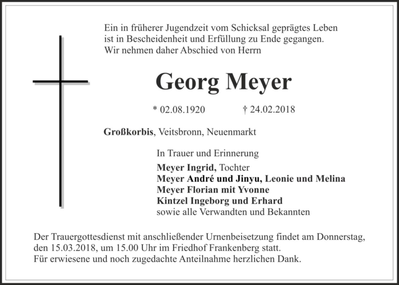 Der Trauergottesdienst mit anschließender Urnenbeisetzung findet am Donnerstag, den 15.03.2018, um 15.00 Uhr im Friedhof Frankenberg statt. Für erwiesene und noch zugedachte Anteilnahme herzlichen Dank.