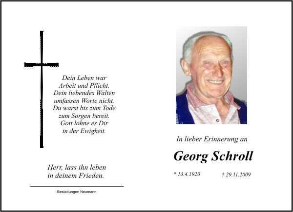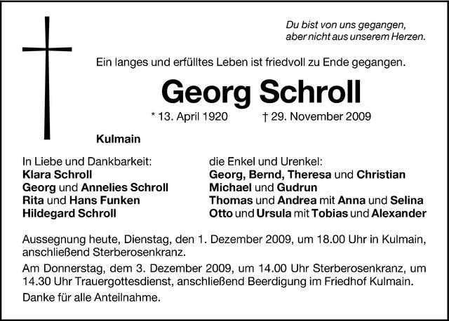 Sterberosenkranz am Donnerstag, 3.12.2009 um 14.00 Uhr in der Pfarrkirche Kulmain, um 14.30 Uhr Trauergottesdienst, anschließend Beerdigung auf dem Friedhof.