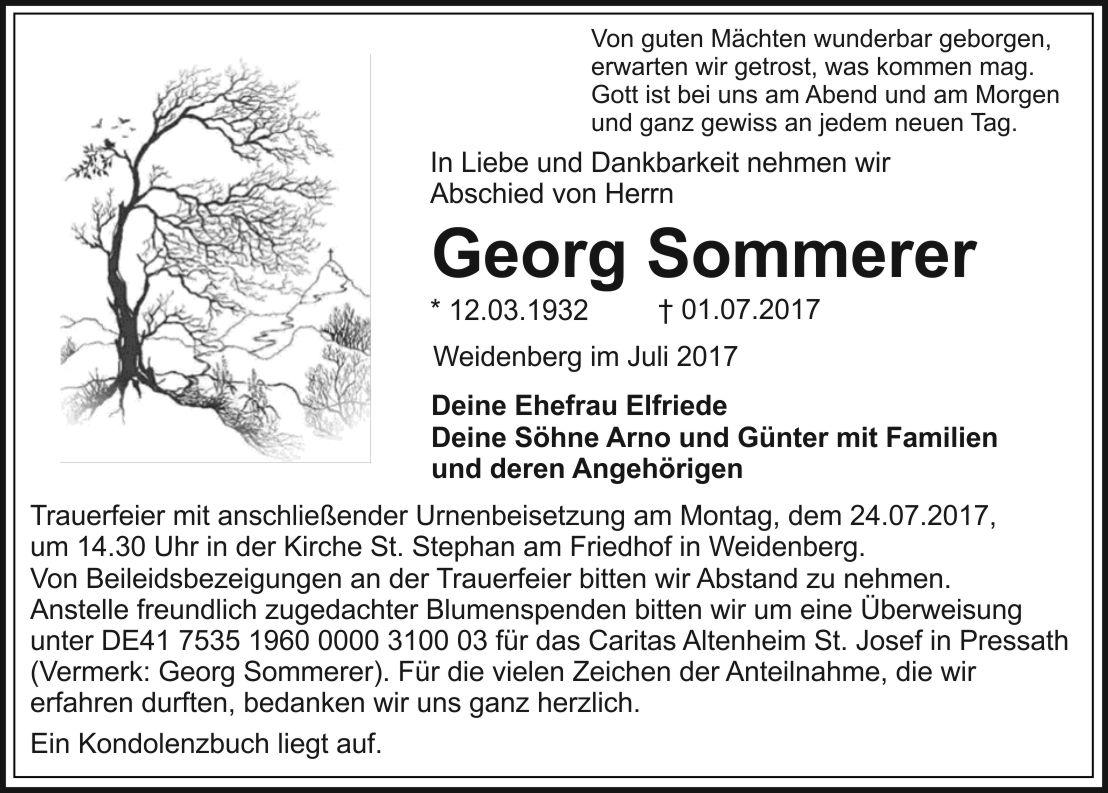 (Vermerk: Georg Sommerer). Für die vielen Zeichen der Anteilnahme, die wir