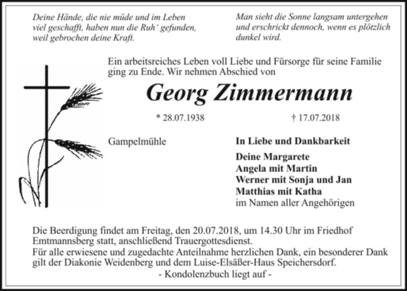Die Beerdigung findet am Freitag, den 20.07.2018, um 14.30 Uhr im Friedhof Emtmannsberg statt, anschließend Trauergottesdienst.