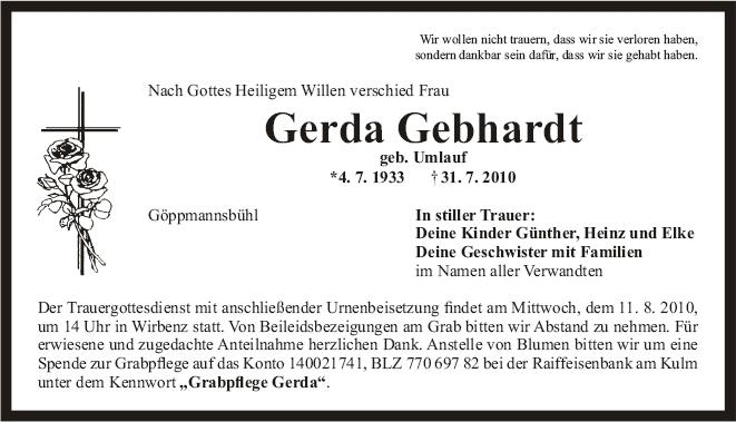 Die Beisetzung findet auf dem Friedhof in Friedhof in Wirbenz statt.