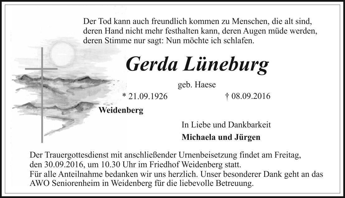 den 30.09.2016, um 10.30 Uhr im Friedhof Weidenberg statt.