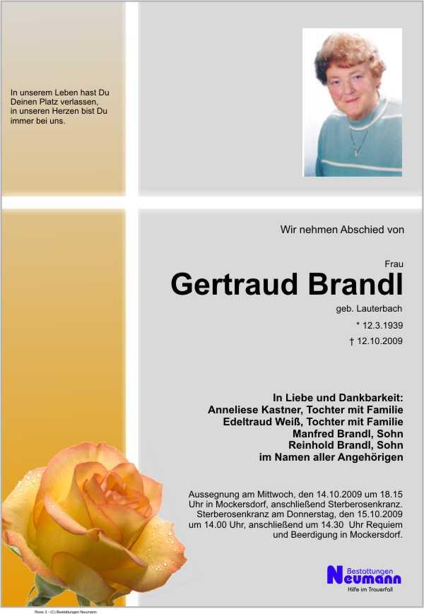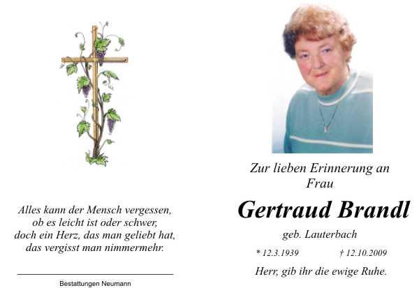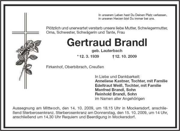 Die Beisetzung findet am Donnerstag, 15.10.2009 um 14:00 Uhr auf dem Friedhof in Mockersdorf statt.