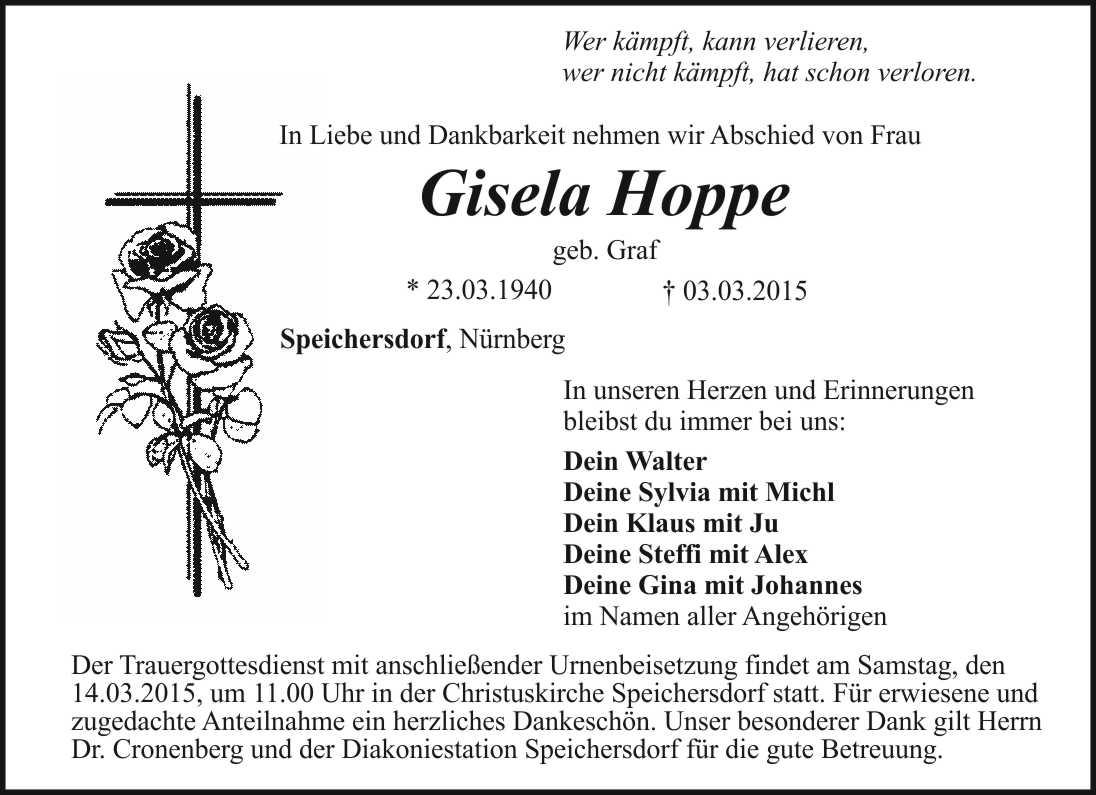 Der Trauergottesdienst mit anschließender Urnenbeisetzung findet am Samstag, den 14.03.2015, um 11.00 Uhr in der Christuskirche Speichersdorf statt. Für erwiesene und zugedachte Anteilnahme ein herzliches Dankeschön. Unser besonderer Dank gilt Herrn Dr. Cronenberg und der Diakoniestation Speichersdorf für die gute Betreuung.