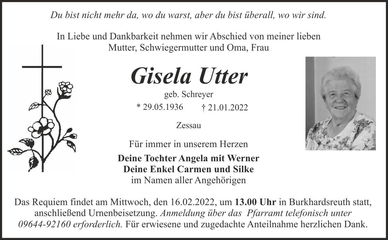 Das Requiem findet am Mittwoch, den 16.02.2022, um 13.00 Uhr in Burkhardsreuth statt, anschließend Urnenbeisetzung. Anmeldung über das Pfarramt telefonisch unter