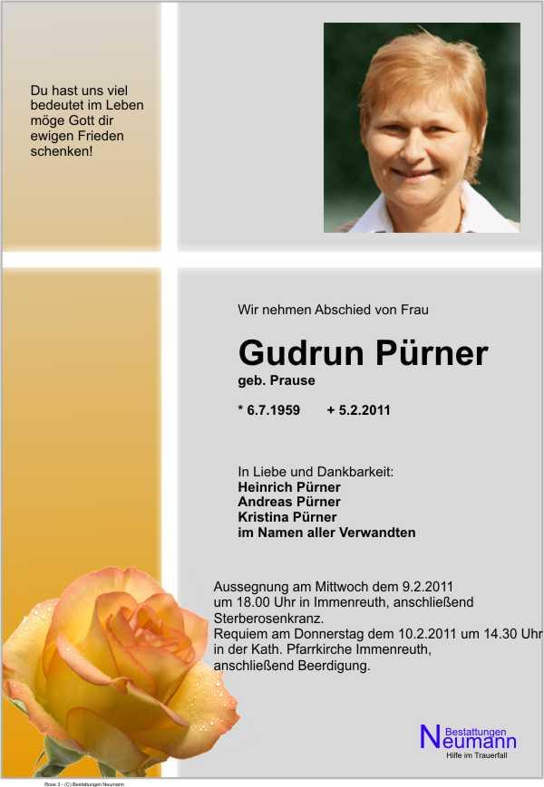 Die Beisetzung findet am Donnerstag, 10.02.2011 um 14:30 Uhr auf dem Friedhof in Immenreuth statt.