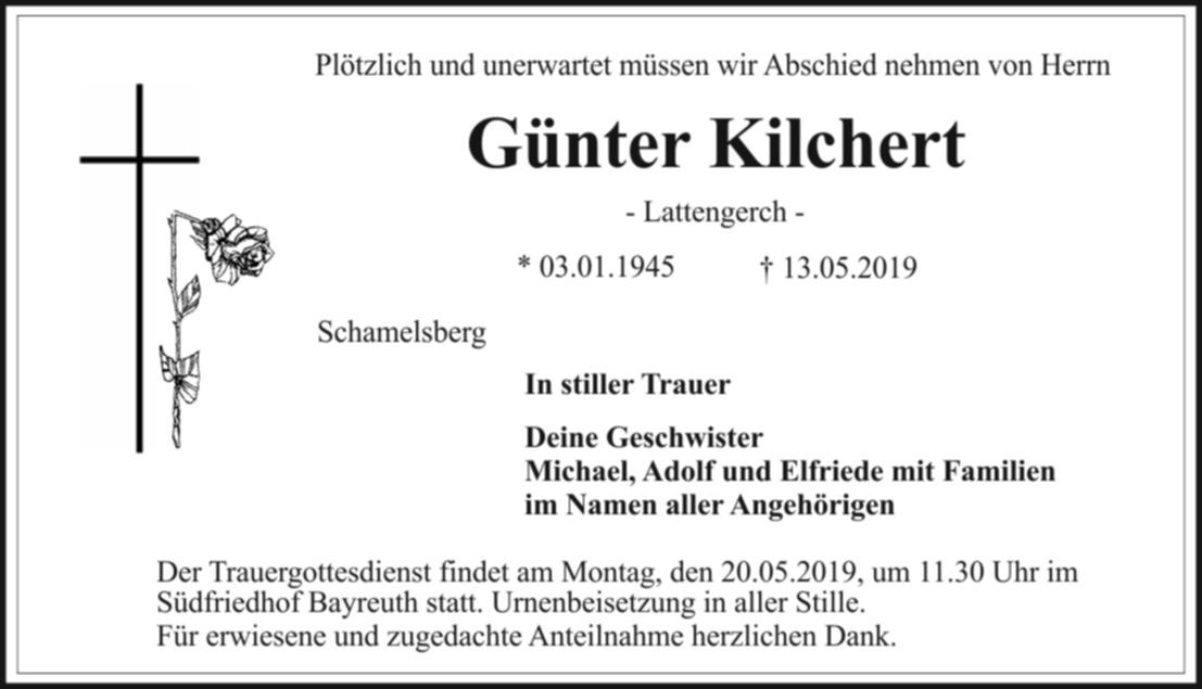 Der Trauergottesdienst findet am Montag, den 20.05.2019, um 11.30 Uhr im Südfriedhof Bayreuth statt. Urnenbeisetzung in aller Stille.