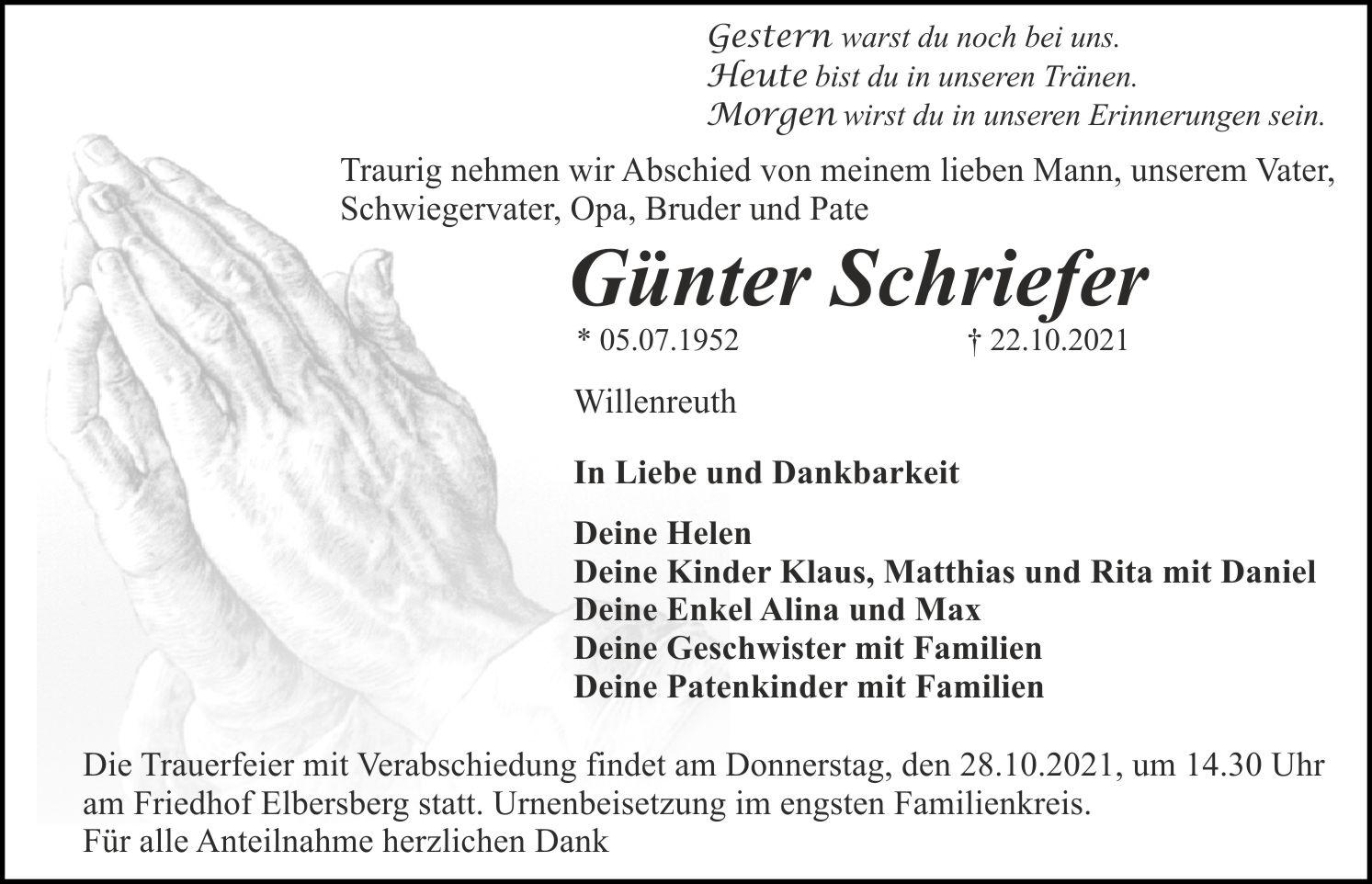 Die Trauerfeier mit Verabschiedung findet am Donnerstag, den 28.10.2021, um 14.30 Uhr am Friedhof Elbersberg statt. Urnenbeisetzung im engsten Familienkreis.