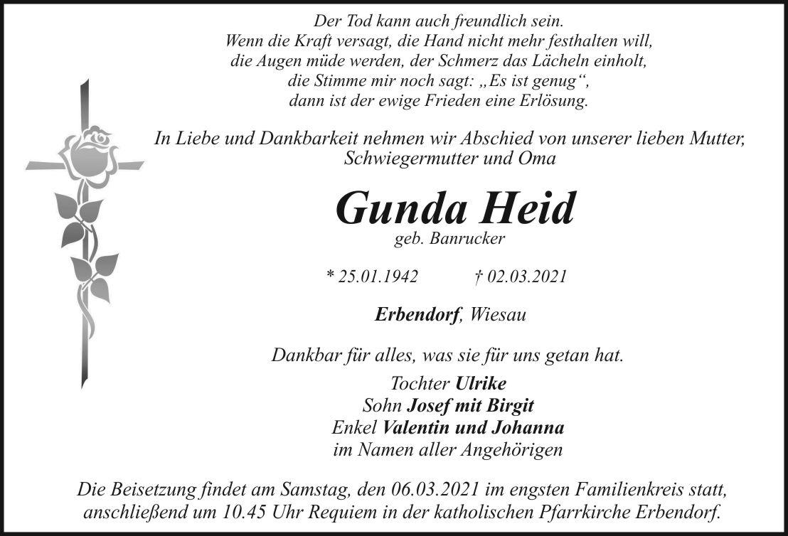 Die Beisetzung findet am Samstag, den 06.03.2021 im engsten Familienkreis statt, anschließend um 10.45 Uhr Requiem in der katholischen Pfarrkirche Erbendorf.