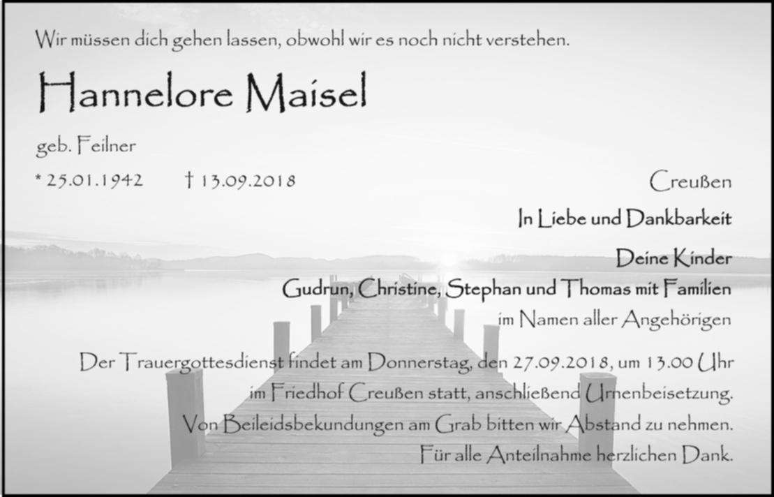 Der Trauergottesdienst findet am Donnerstag, den 27.09.2018, um 13.00 Uhr