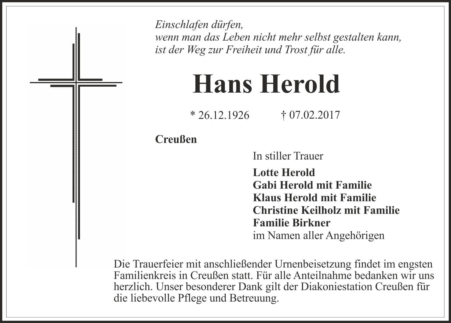 Die Trauerfeier mit anschließender Urnenbeisetzung findet im engsten Familienkreis in Creußen statt. Für alle Anteilnahme herzlichen Dank.