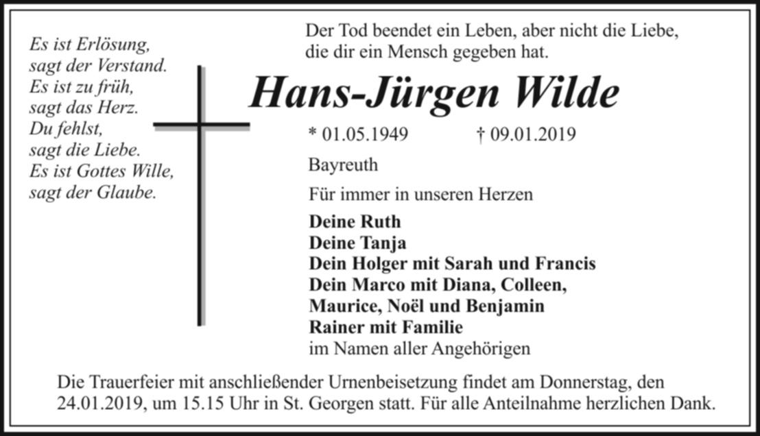 Die Trauerfeier mit anschließender Urnenbeisetzung findet am Donnerstag, den 24.01.2019, um 15.15 Uhr in St. Georgen statt. Für alle Anteilnahme herzlichen Dank.