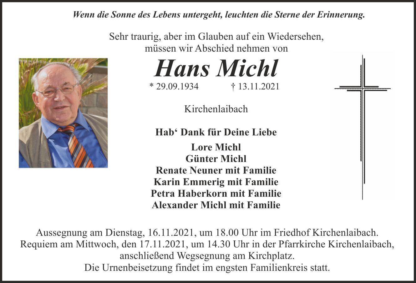 Requiem am Mittwoch, den 17.11.2021, um 14.30 Uhr in der Pfarrkirche Kirchenlaibach, anschließend Wegsegnung am Kirchplatz.