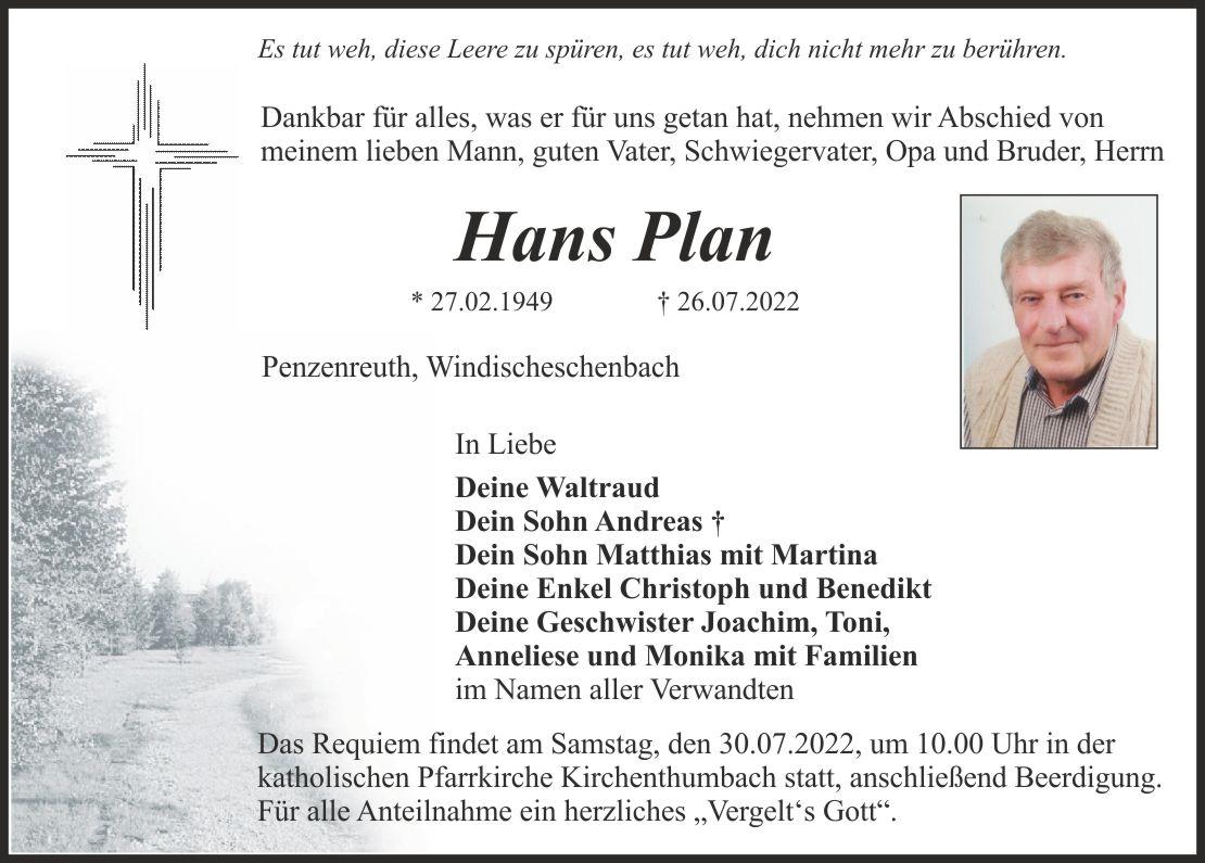 Das Requiem findet am Samstag, den 30.07.2022, um 10.00 Uhr in der katholischen Pfarrkirche Kirchenthumbach statt, anschließend Beerdigung.