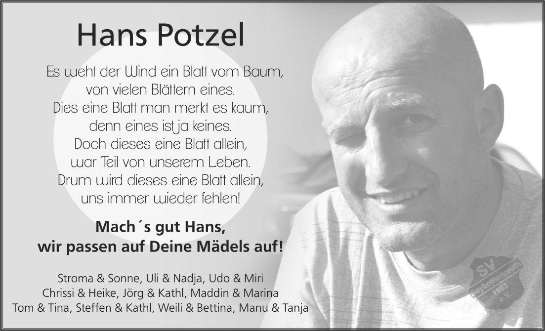 Man sieht die Sonne langsam untergehen und erschrickt doch, wenn es plötzlich dunkel ist. Hans Du warst ein herzensguter Mensch und ein fairer Sportler. Meine aufrichtige Anteilnahme und mein herzlichstes Beileid gilt Deiner Familie. Hilf Ihnen in dieser schweren Zeit und schau vom Himmel auf Deine Mädels, sie brauchen Dich. Machs gut Kumpel