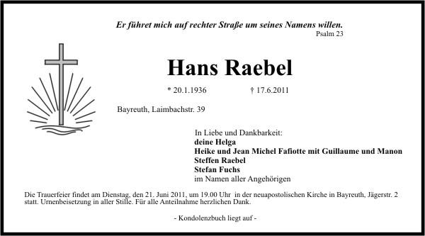 neuapostolischen Kirche in Bayreuth, Jägerstr. 2 statt. Urnenbeisetzung in