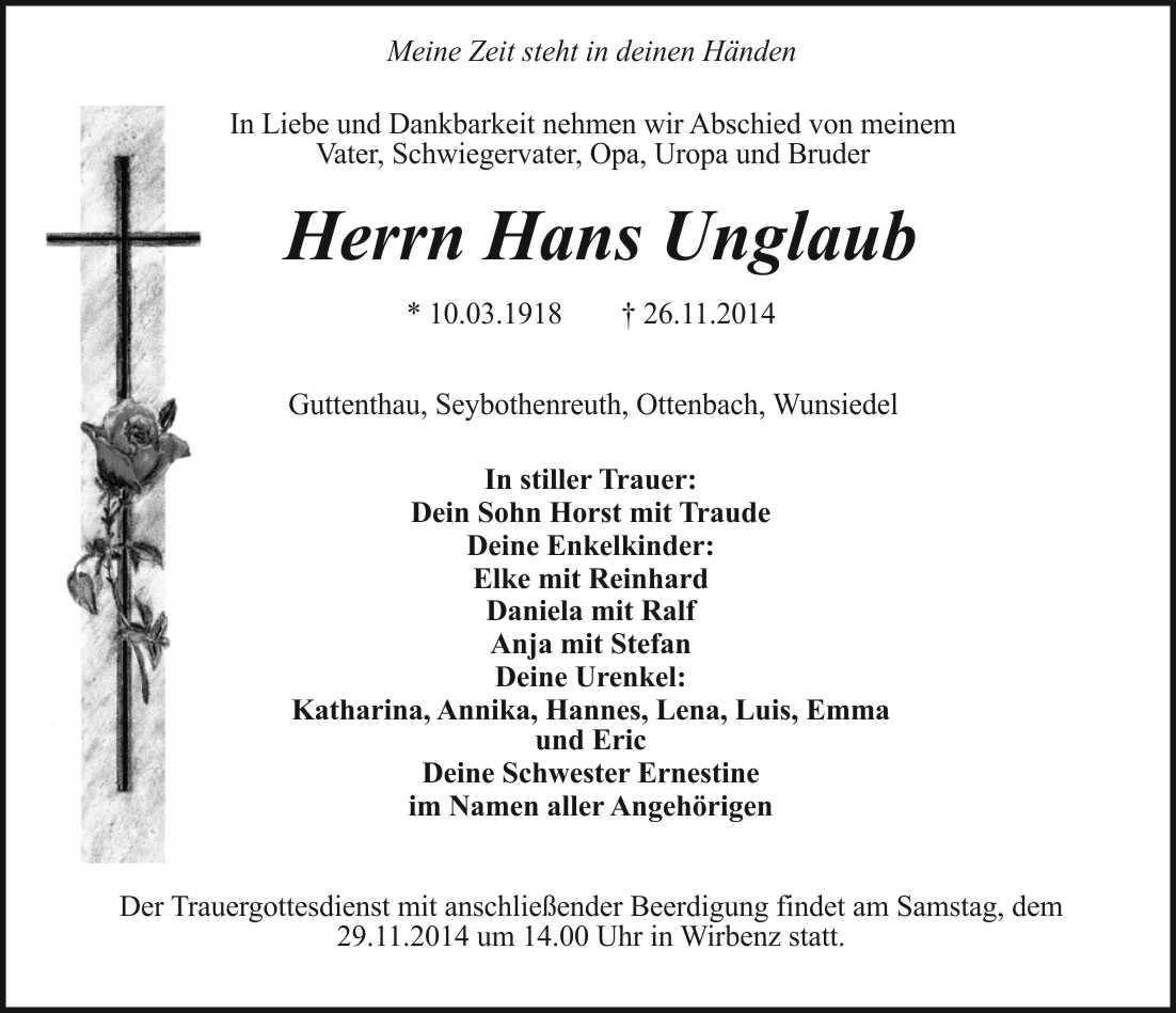Die Beisetzung findet am Samstag, 29.11.2014 um 14:00 Uhr auf dem Friedhof in Wirbenz statt.