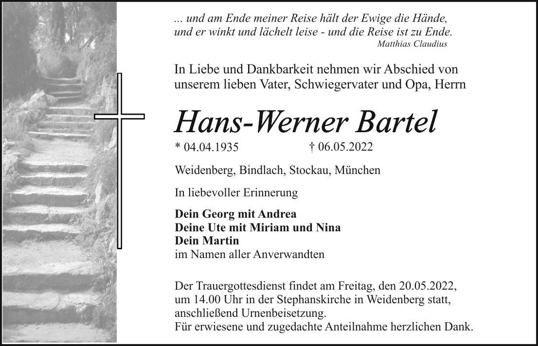 Der Trauergottesdienst findet am Freitag, den 20.05.2022,