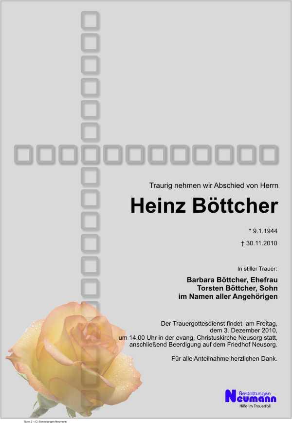 Der Trauergottesdienst findet am Freitag, dem 3.12.2010 um 14.00 Uhr in der Christuskirche Neusorg statt, anschließend Beerdigung auf dem Friedhof.