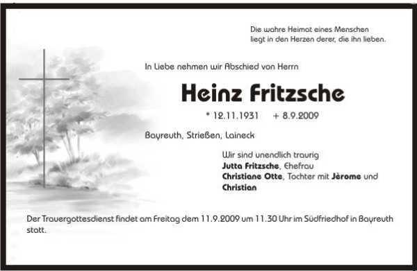 Die Trauerfeier findet am Freitag, dem 11.9.2009 um 11.30 Uhr im Südfriedhof in Bayreuth statt. Die Urnenbeisetzung erfolgt in aller Stille.