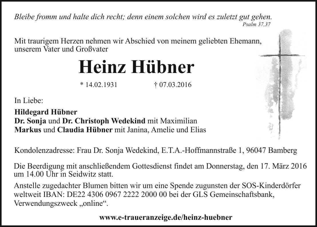 Seine Spuren sind tief und wir denken an Heinz Hübner. Du bist nicht vergessen. Viel Kraft für die trauernden Familienangehörigen und vor allem für Hildegard