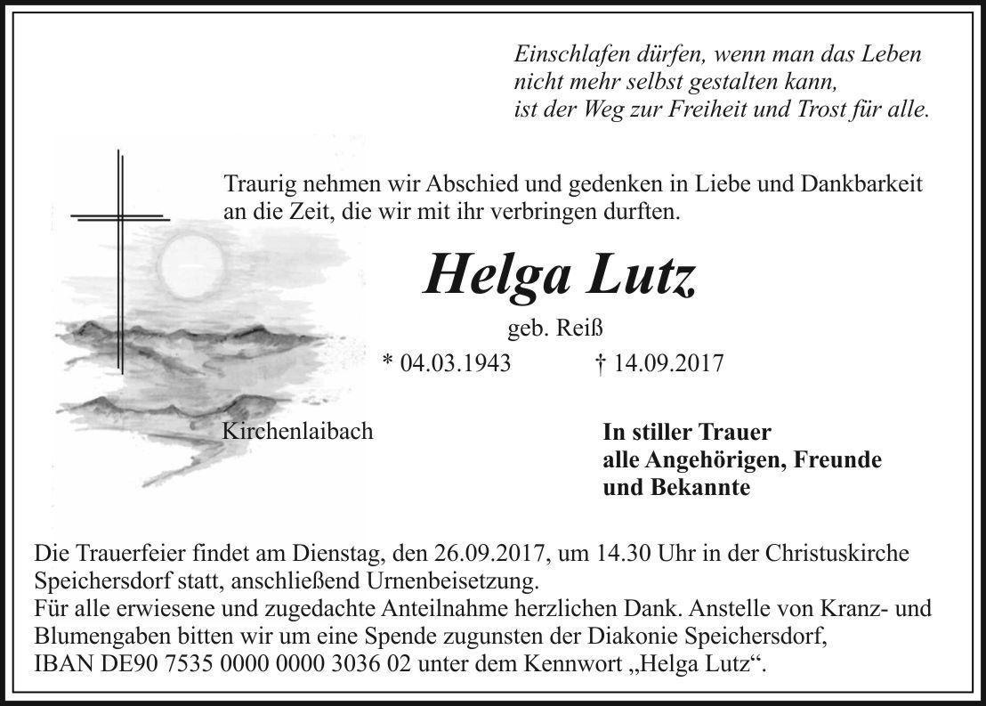 IBAN DE90 7535 0000 0000 3036 02 unter dem Kennwort „Helga Lutz“.