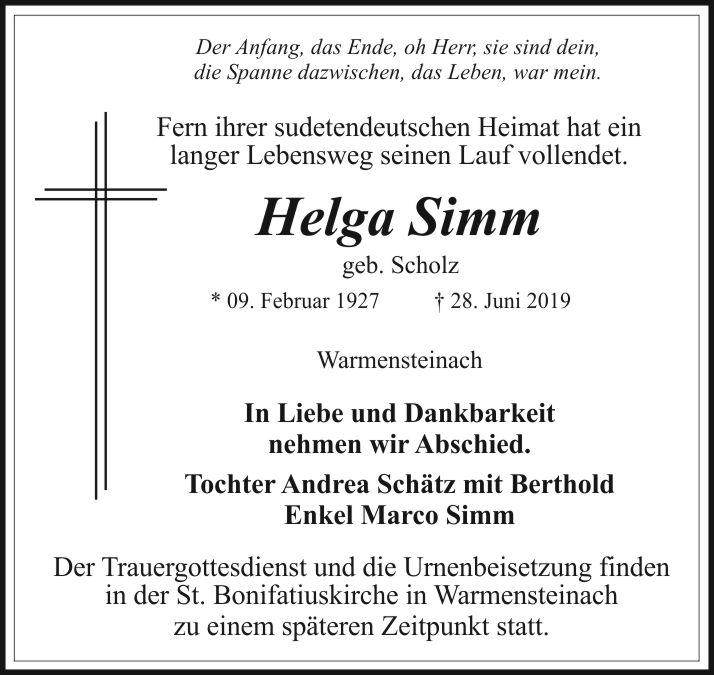 Das Requiem findet am Dienstag, den 06.08.2019, um 14.30 Uhr in der Bonifatiuskirche Warmensteinach statt, anschließend Urnenbeisetzung im Friedhof Warmensteinach.
