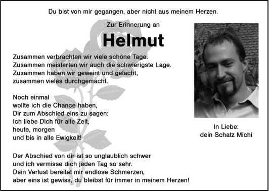 Auch ich bin betroffen mit tiefster Trauer um Helmut!