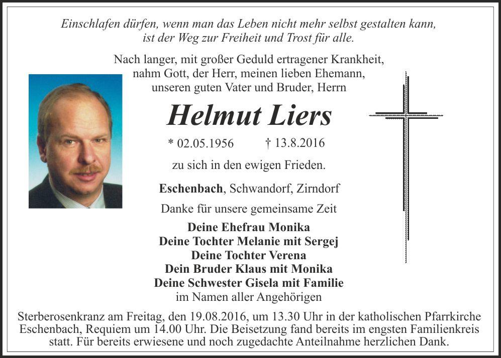 Sterberosenkranz am Freitag, den 19.08.2016, um 13.30 Uhr in der katholischen Pfarrkirche Eschenbach, Requiem um 14.00 Uhr. Die Beisetzung erfolgt im engsten Familienkreis statt. Für bereits erwiesene und noch zugedachte Anteilnahme herzlichen Dank.