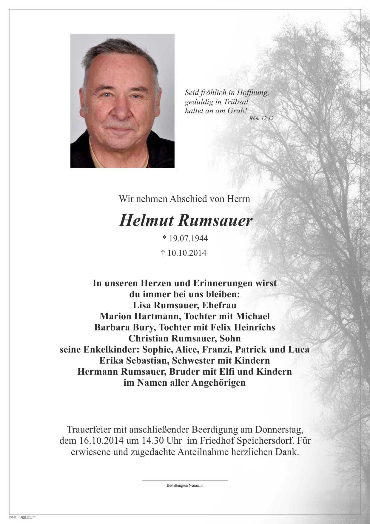 Trauerfeier mit anschließender Beerdigung am Donnerstag, dem 16.10.2014 um 14.30 Uhr im Friedhof Speichersdorf. Für erwiesene und zugedachte Anteilnahme herzlichen Dank.