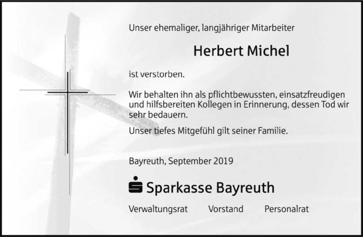 Der Trauergottesdienst findet am Mittwoch, den 18.09.2019, um 14.30 Uhr im Friedhof Bad Berneck