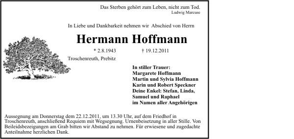 Die Beisetzung findet auf dem Friedhof in Friedhof in Troschenreuth statt.
