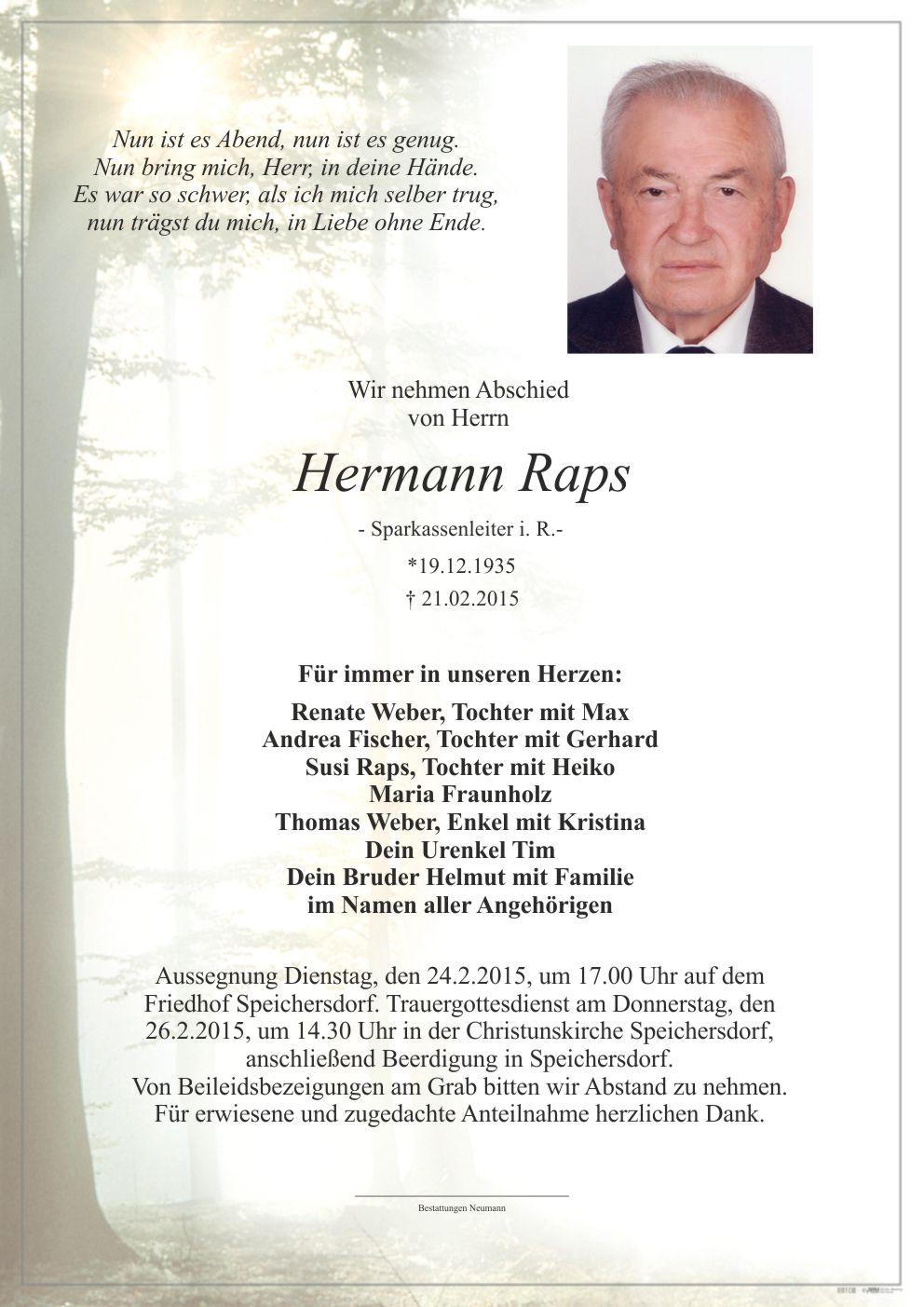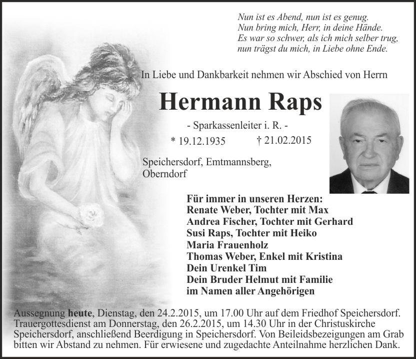 Der Trauergottesdienst findet am Donnerstag, den 26.2.2015, um 14.30 Uhr in der Christuskirche Speichersdorf statt, anschließend Beerdigung. Von Beileidsbezeigungen am Grab bitten wir Abstand zu nehmen. Für alle Anteilnahme herzlichen Dank.