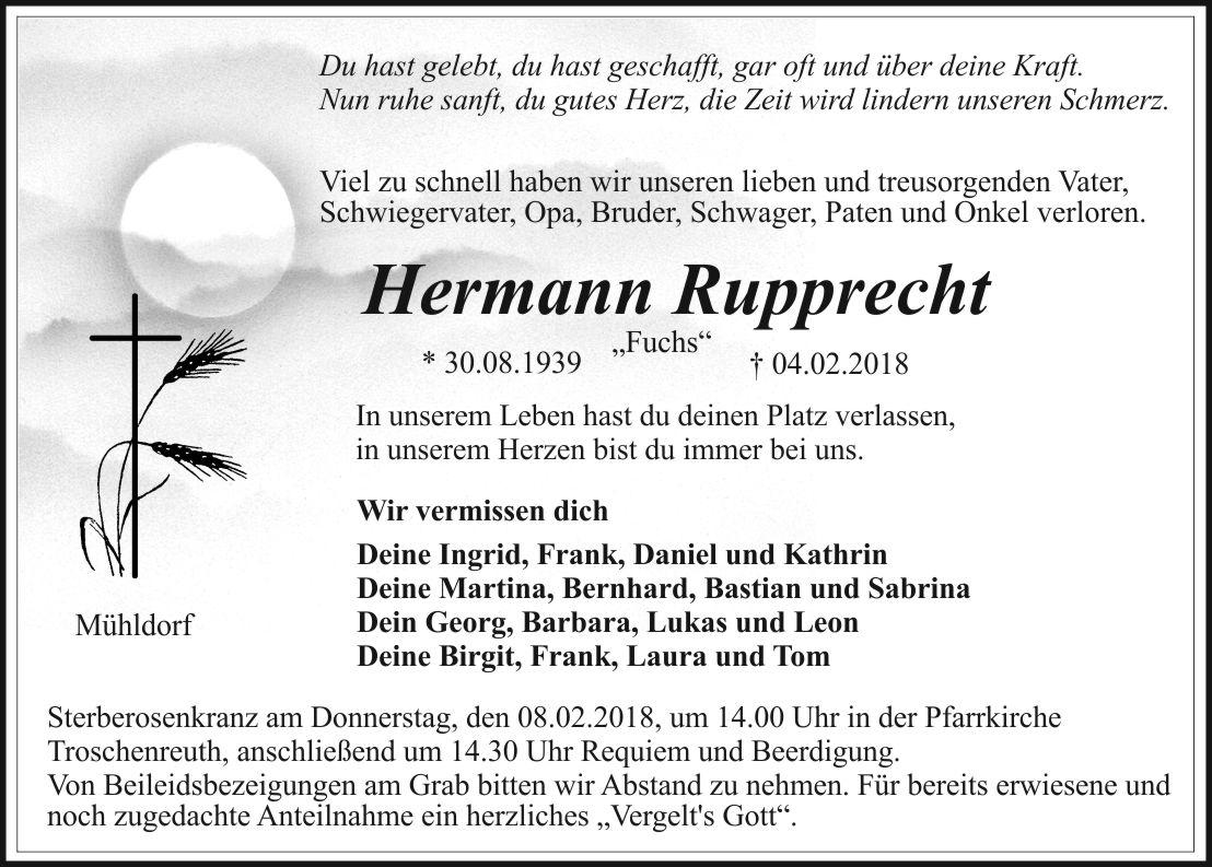 Troschenreuth, anschließend um 14.30 Uhr Requiem und Beerdigung.
