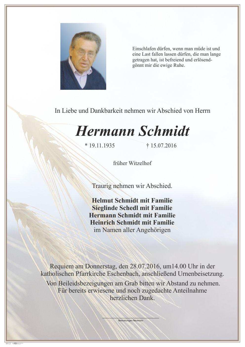 Requiem am Donnerstag, den 28.07.2016, um 14.00 Uhr in der katholischen Pfarrkirche Eschenbach statt, anschließend Urnenbeisetzung im Friedhof .