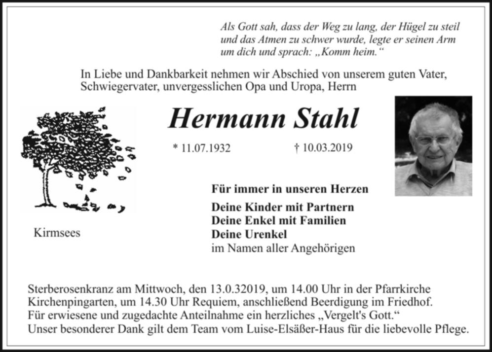 Sterberosenkranz am Mittwoch, den 13.0.32019, um 14.00 Uhr in der Pfarrkirche Kirchenpingarten, um 14.30 Uhr Requiem, anschließend Beerdigung im Friedhof.