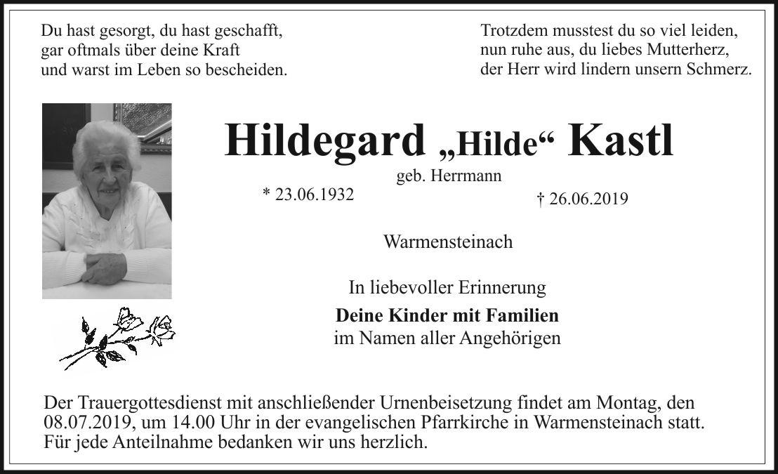 Der Trauergottesdienst mit anschließender Urnenbeisetzung findet am Montag, den 08.07.2019, um 14.00 Uhr in der evangelischen Pfarrkirche in Warmensteinach statt. Für jede Anteilnahme bedanken wir uns herzlich.