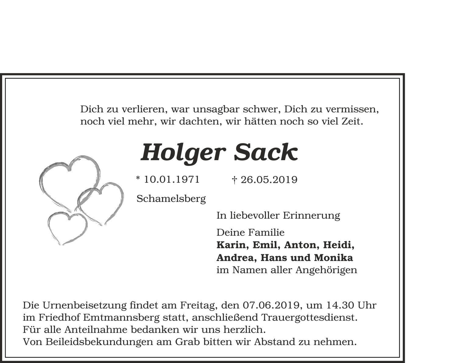 Die Urnenbeisetzung findet am Freitag, den 07.06.2019, um 14.30 Uhr im Friedhof Emtmannsberg statt, anschließend Trauergottesdienst.