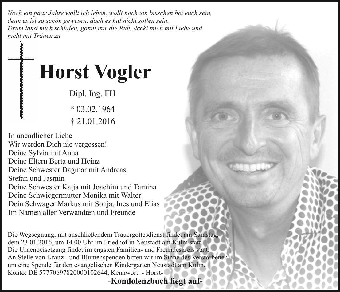 dem 23.01.2016, um 14.00 Uhr im Friedhof in Neustadt am Kulm statt.