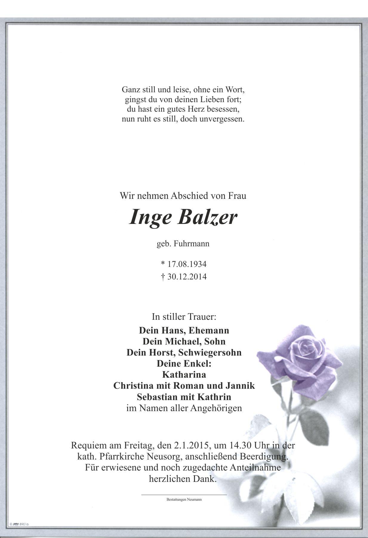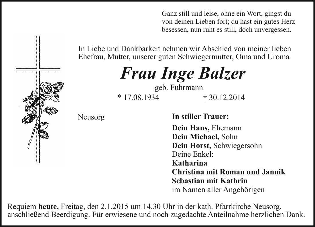 Requiem am Freitag, den 2.1.2015, um 14.30 Uhr in der kath. Pfarrkirche Neusorg, anschließend Beerdigung. Für erwiesene und noch zugedachte Anteilnahme herzlichen Dank.
