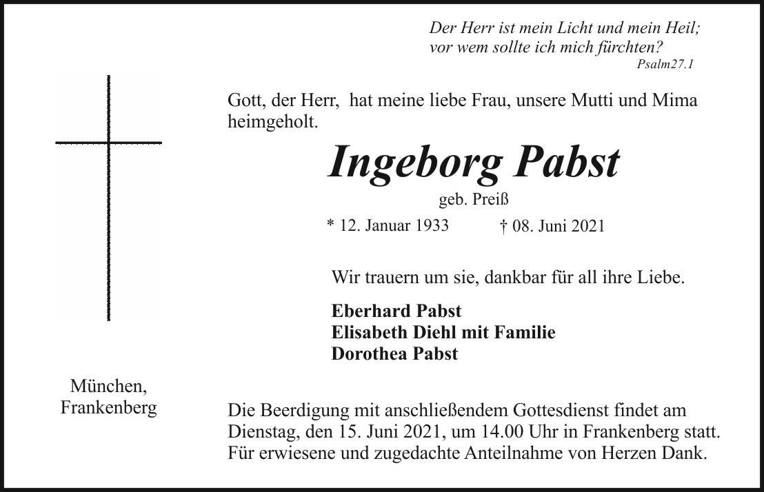 Juni 2021, um 14.00 Uhr in Frankenberg statt. Für erwiesene und zugedachte